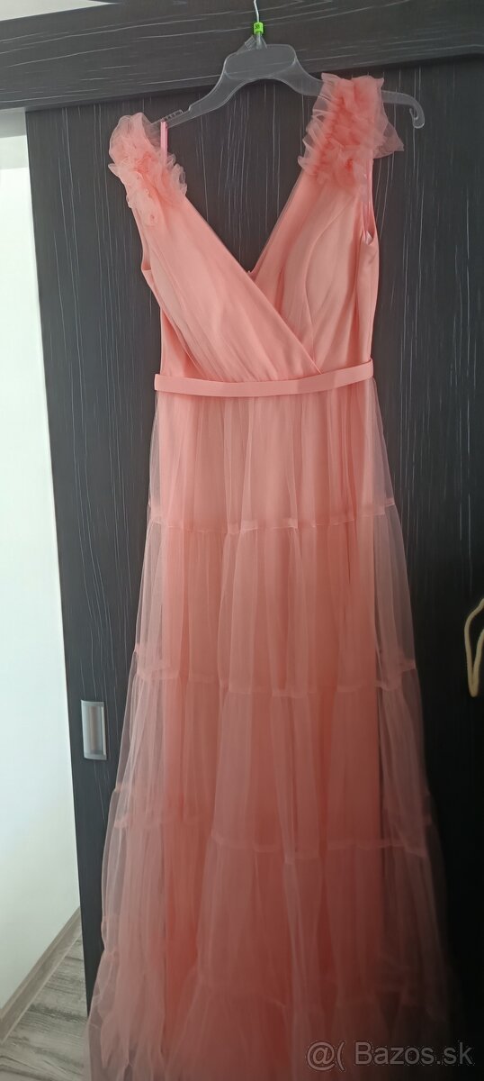 Predám dámske spoločenské šaty. Vo farbe Marhuľova. Veľkosť 38. Viac info volať. Pôvodná cena na foto.