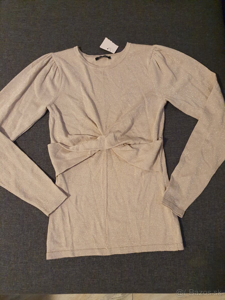 Tricko je nove, nenosene, s visackou. Vpredu ma ozdobny uzol. Velkost XS, znacka Orsay. Cena 12 € + postovne.