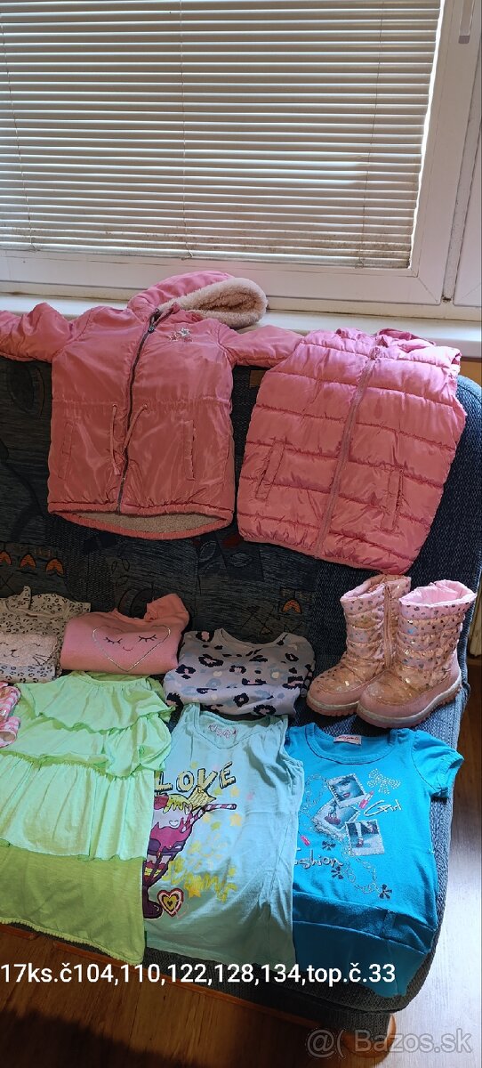 Predám dievčenské mix oblečenie, veľkosť od 104 po 134 plus čižmičky č.33,spolu 17 kusov.