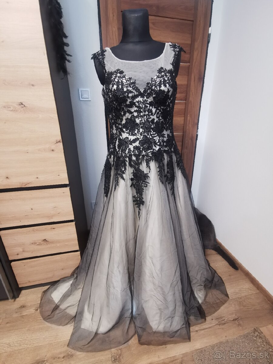 Béžovo čierne šaty na svadbu. Univerzálna veľkosť od L+. Ideálne na XL.