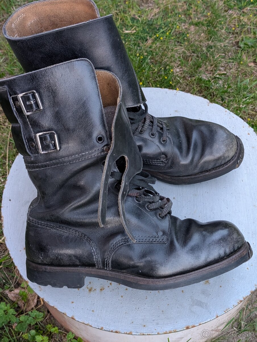 Vojenská obuv vyrábaná v CEBO na zapad. Celo kožené prešívané a podsite hnedou kožou,predok ošetrený kovovými špičkami.