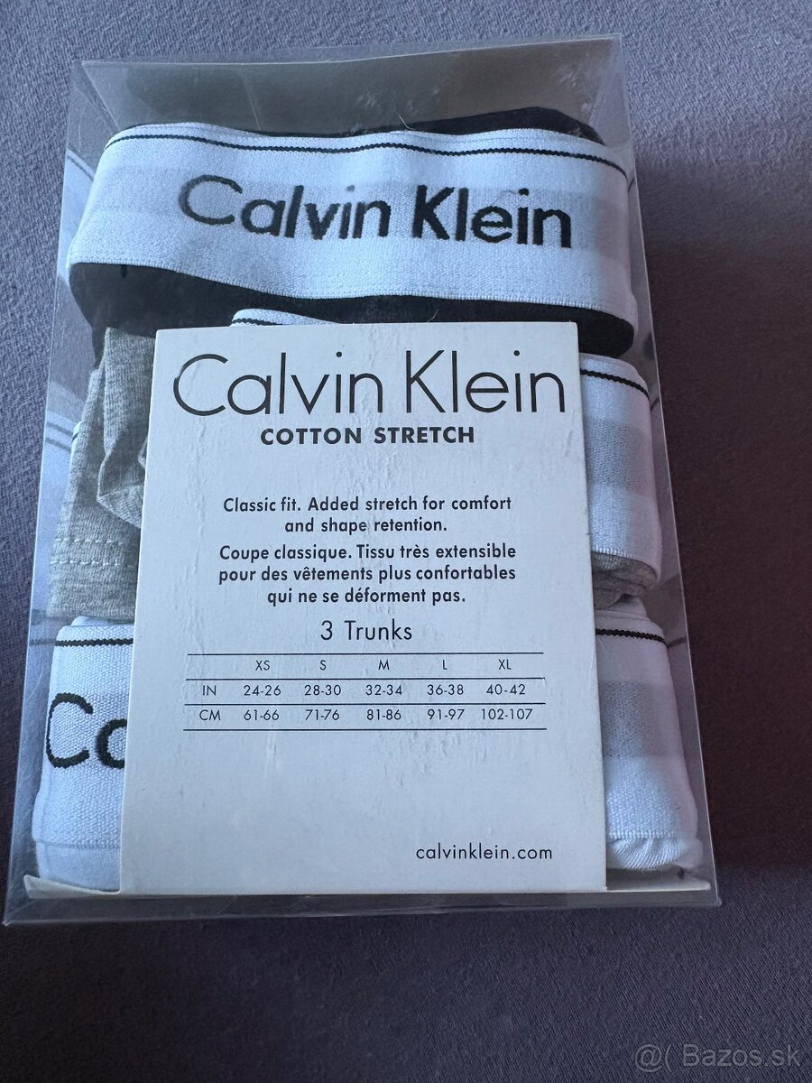 Predám nový set 3 kusov pánskych boxeriek Calvin Klein v čiernej farbe. Klasický „Cotton Stretch“ strih, ktorý výborne sedí a je pohodlný na každodenné nosenie. Veľkosť: XL (vďaka strihu sadnú aj ako väčšie L)