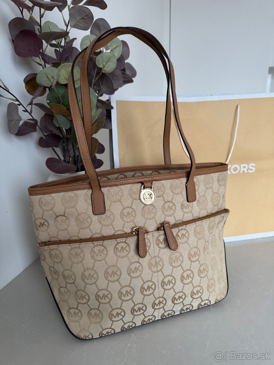 Predam kabelku original znacka Michael Kors. Rozmer: sirka (merana cca v polke kabelky) 38cm a vyska 24cm. Kraje, spodok a rukovat su kozene, inak je material textil.