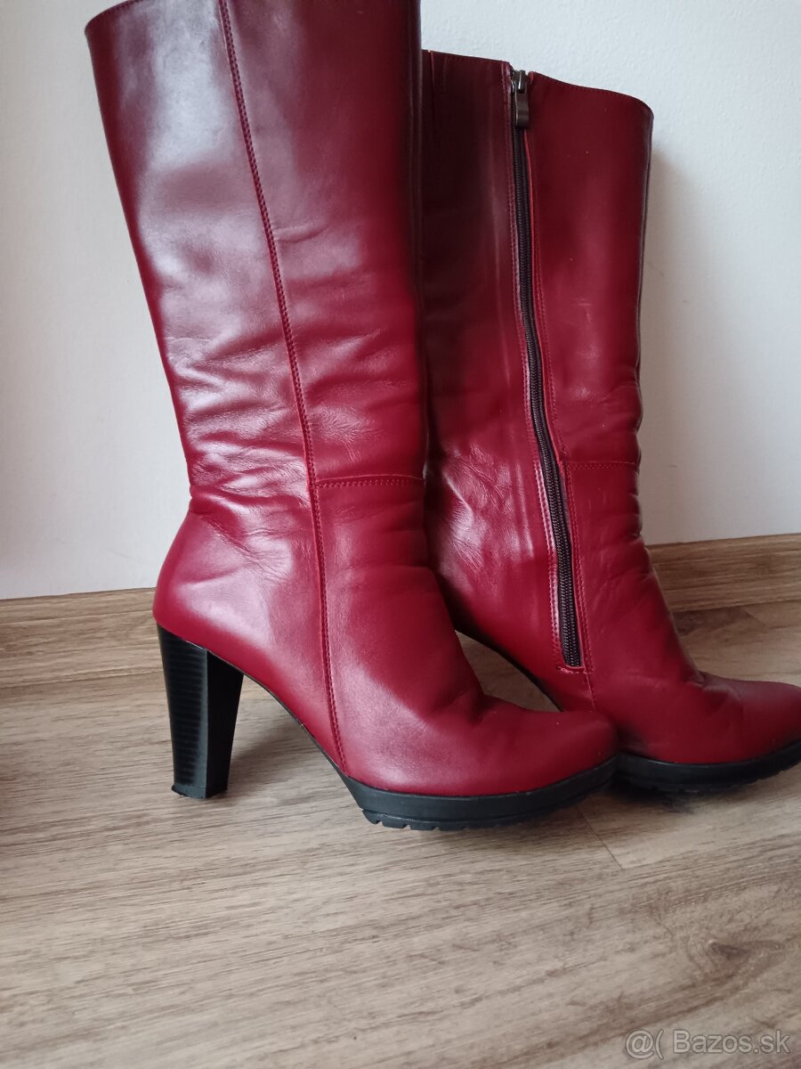čižmy červené z brúsenej kože - [8.2. 2026]Predám nosené čižmy, jar/jeseň. Sú z brúsenej kože pôvodná cena 80€. Opätky sú schodené. Inak bez poškodení, známky nosenia sú, treba kožu trošku oživiť.