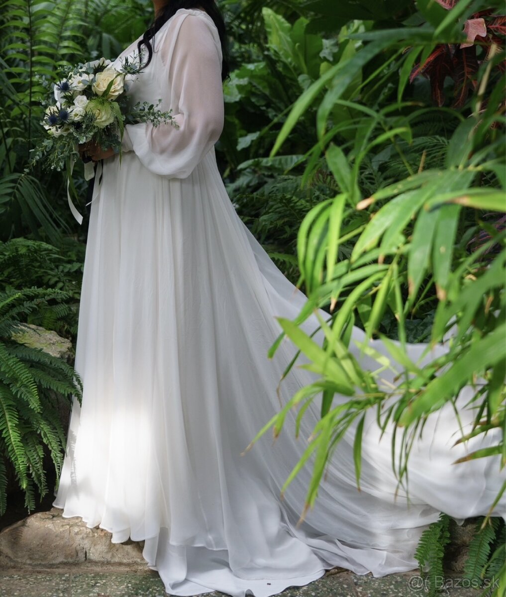 Biele svadobné šaty - [11.2. 2026]Ľahučké jednoduché svadobné šaty ušité známou slovenskou módnou návrhárkou Veronikou Kostkovou.
