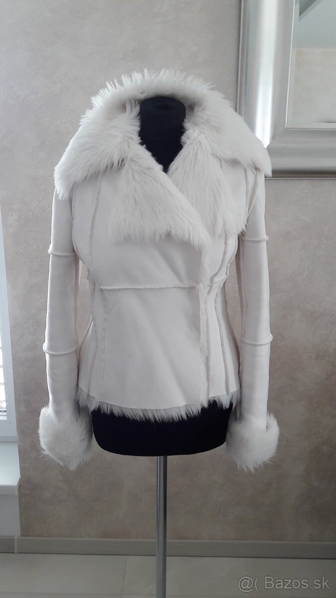 Predám krásny teplý kabátik zn.MANGO.Z brúsenej kože.Bielo smotanová farba. Veľkosť S. 2x oblečený,bez poškodenia v top stave.Dá sa čistiť v čistiarni.Rozmery : Dĺžka - 60 cm,dĺžka rukáva - 63 cm,obvod hrude - 94 cm. Povodná cena 150 eur.