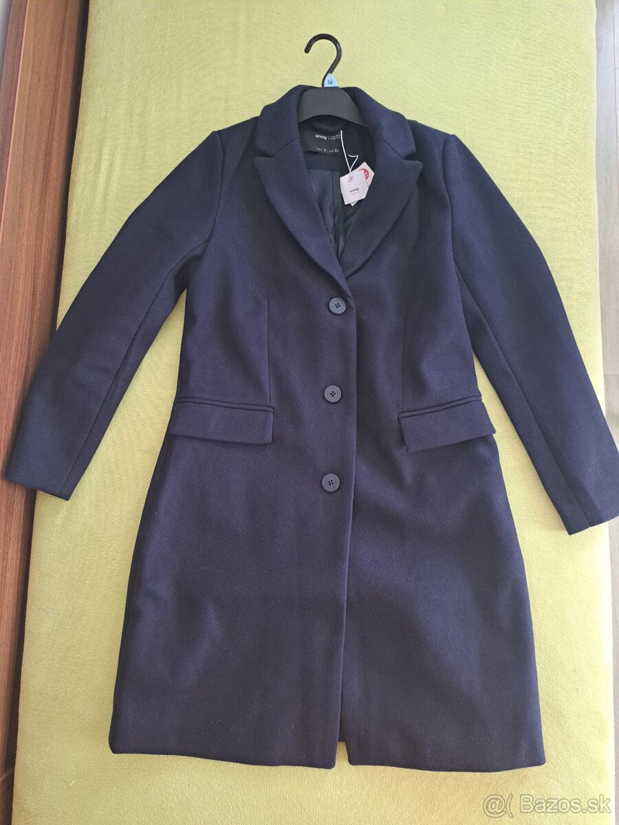 Tmavomodry kabat Sinsay, nenoseny novy este s vysackami. Velkost S - 36, rozmery vo fotkach. Povedala by som, ze prechodny. Zapinanie na 3 gombiky, vrecka, hladka podsivka. Pov. cena 29,99 e.