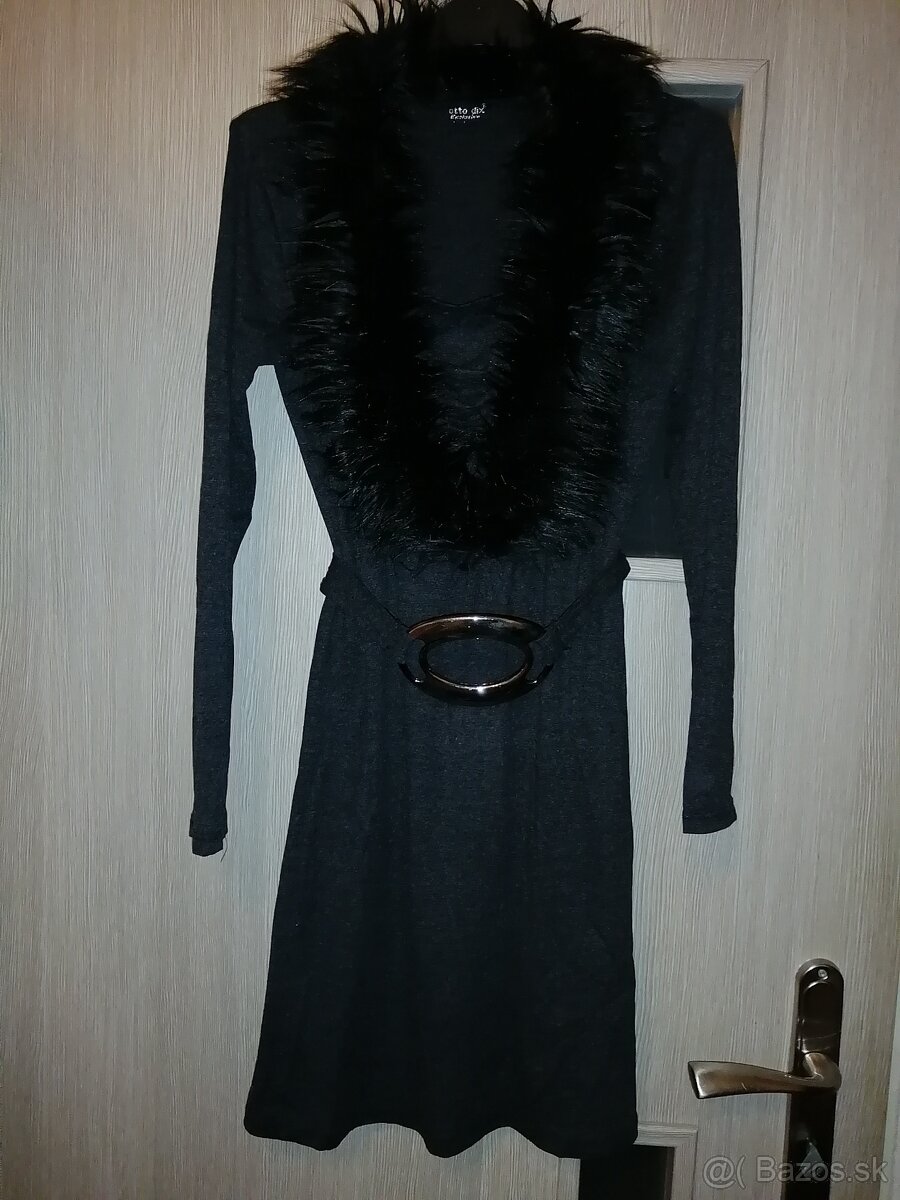 Predám sivé krátke šaty s kožušinovým golierom a opaskom, veľ. S, vo výbornom stave, krásne sedia na postave.