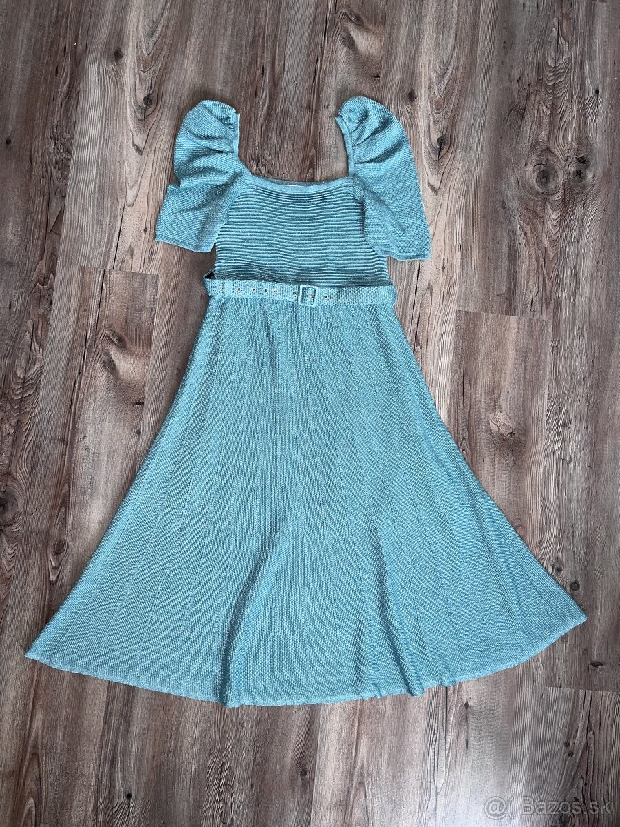 Nádherné šaty značky Resereved , veľmi pekná mentolová farba , prepletená stiebornou niťou . Veľkosť S . Super sedia na postave a určite v nich zažiarite .