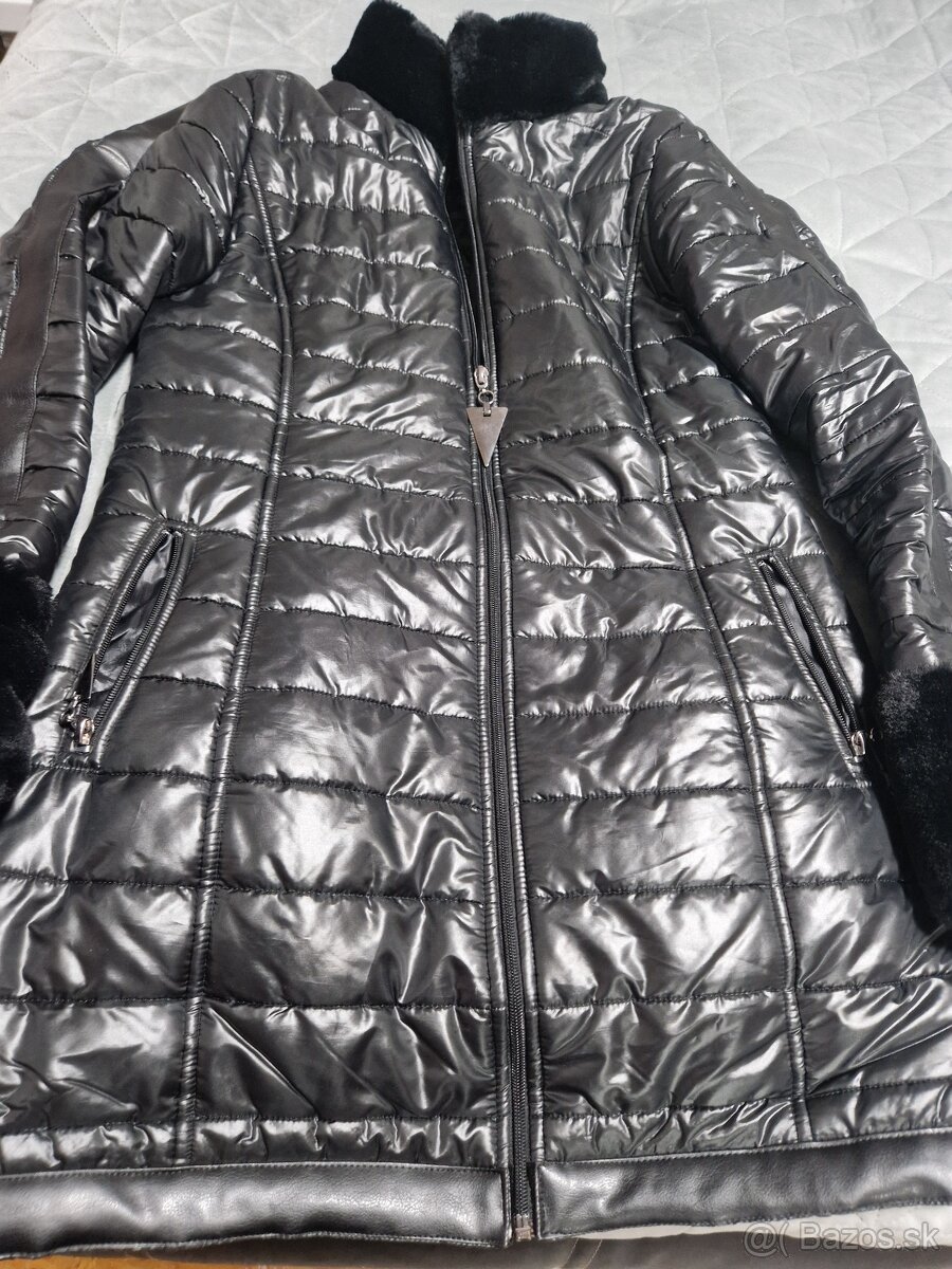 Krásna čierna s kožušonou a koženkou,veľ.36
