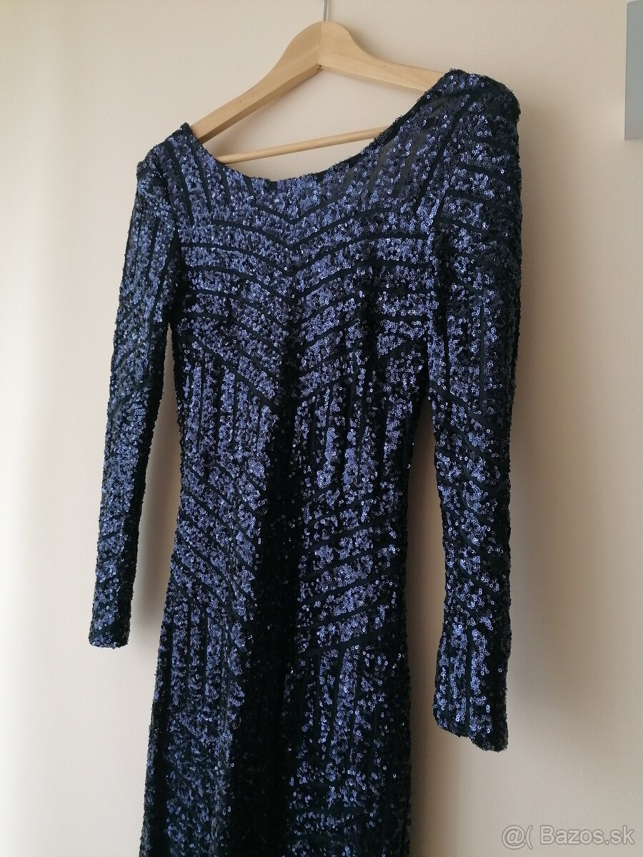 Predám spoločenské tmavomodré flitrované šaty, veľkosť S. Šaty sú elastické.