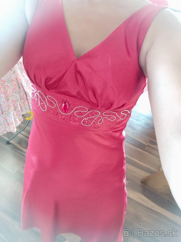 Elegantné červené šaty - [12.2. 2026]Predám veľmi pekné šaty v dobrom stave 1x použité veľkosť M zadná dĺžka 105cm pás 34-35cm rukáv od krku 69cm cena 15 eur bez poštovného