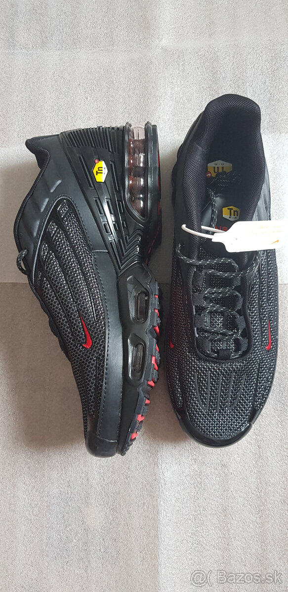 Predám NIKE TN TUNED AIR MAX PLUS 3 BLACK RED. VEĽKOSŤ:45,46. ZNAČKA NAŠITÁ,LEPENÁ,VYŠÍVANÁ. POUŽITÉ 1RAZ ODSKÚŠANÉ. 100% STAV AKO NOVÉ.