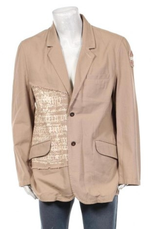 - exkluzívne moderné značkové béžové rifľové - džínsové sako s módnymi nápismi značky EXPLORER materiál rifľovina veľkosť XL cena 14 eur