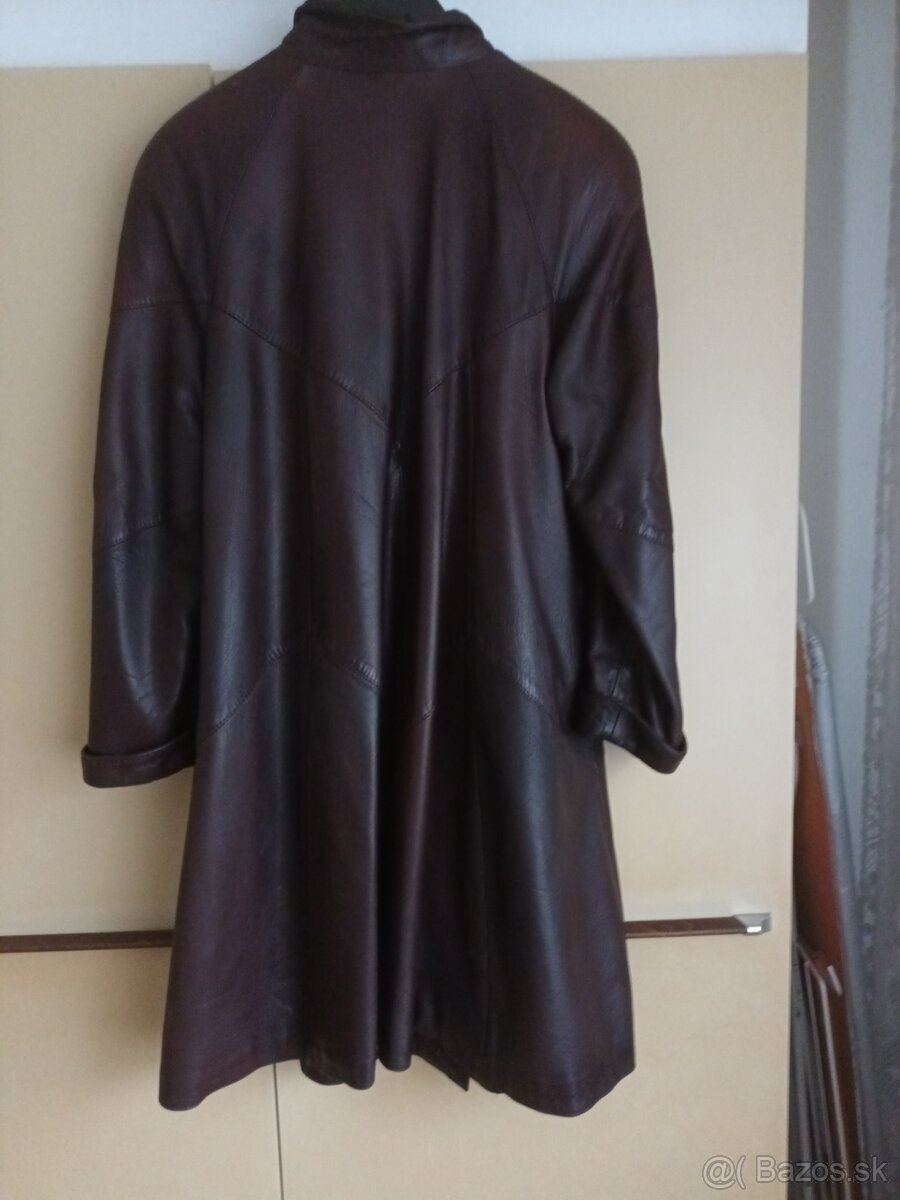 Predám dlhý dámsky kožený kabát čokoládovej farby č.44 (výrobca L.Mikuláš)