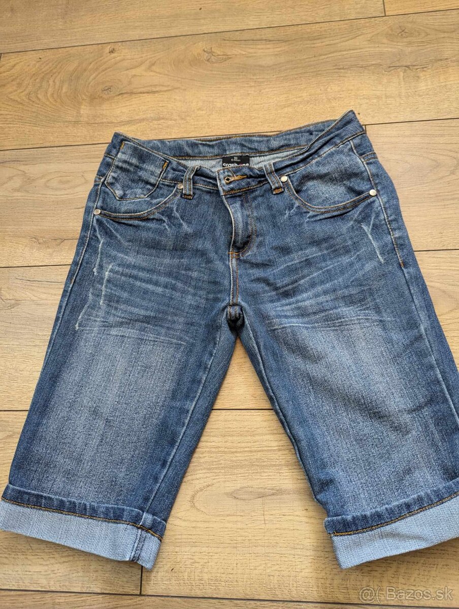 Dámske riflové kraťasy. Obvod pása je 80 cm, dĺžku majú 51 cm.