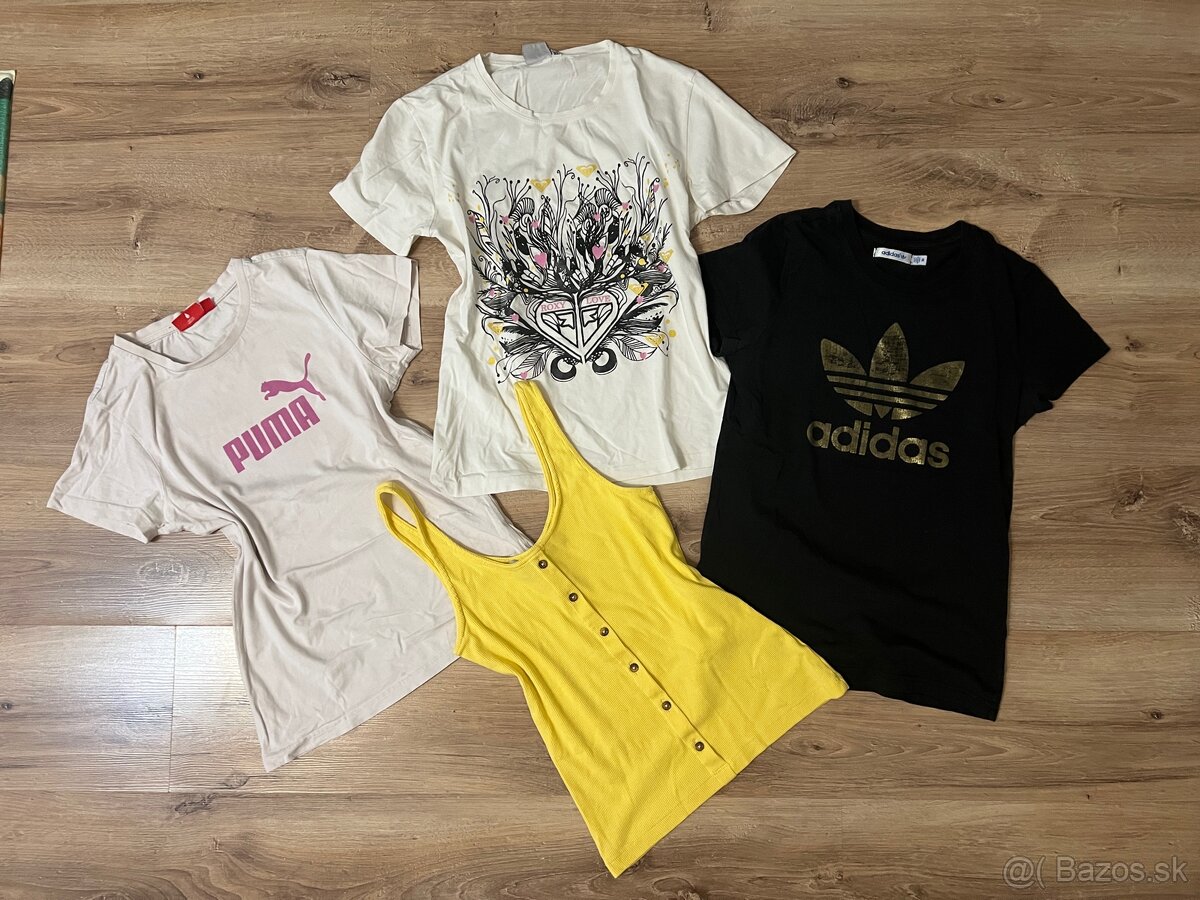 Nosené. Veľkosť tak XS/S. Adidas, Puma a Roxy,… Jedno je žlté tielko značky Clockhouse.