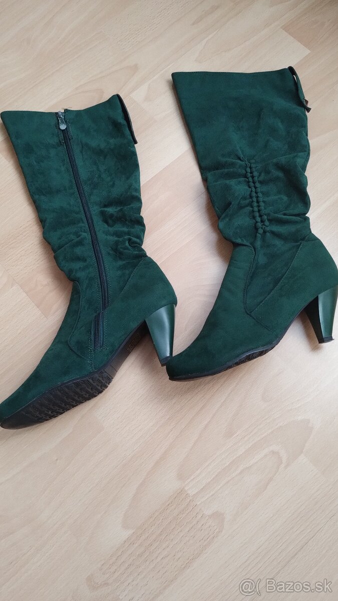 predám dámske čižmy, módna zelená farba, umelý semiš, mierne zateplené, č.36