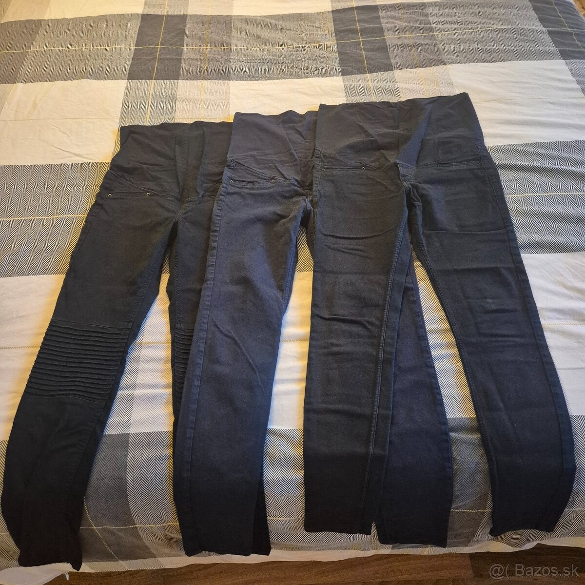 Predam subor tehotenskeho oblecenia - 3x tehotenske rifle velkost M, 3x tehotenska/dojciaca nocna kosela velkost S, domace oblecenie - teplaky a tricka (vsetko na skor chudsiu postavu).