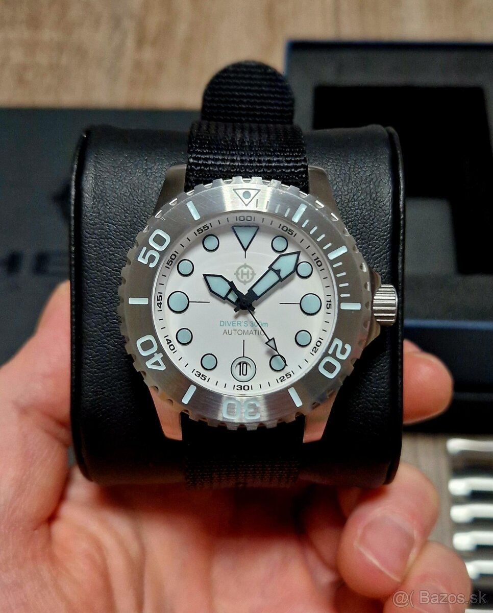 Potápačské hodinky s profesionálnymi parametrami, výborným spracovaním, ISO certifikáciou do 300m ponoru, originálnym dizajnom a bezkonkurenčnou lumi. Automatický strojček Seiko NH35.