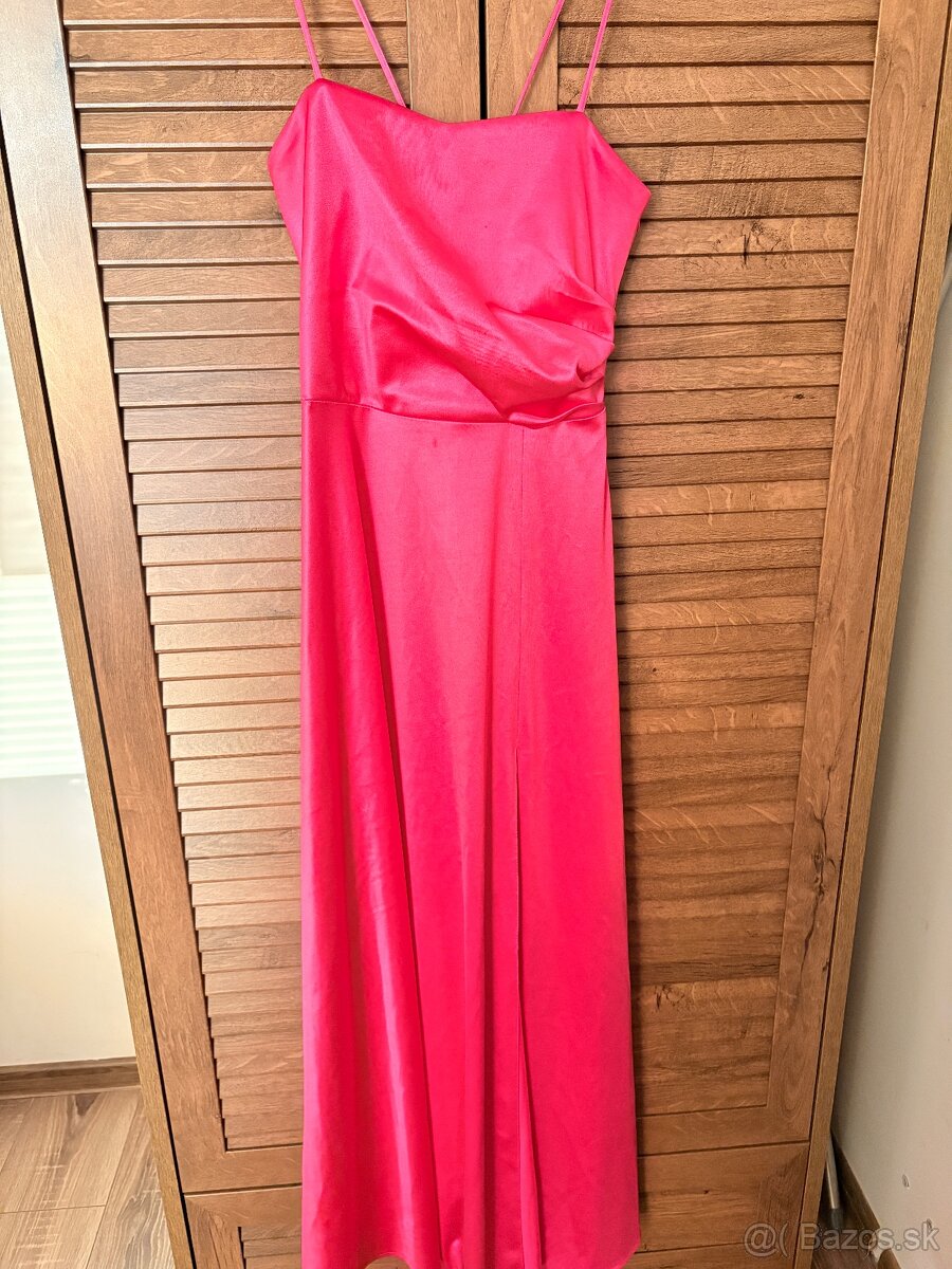Predám nové satenove spoločenské šaty cyklamenove na ramienka s rozporkom krásne lesklé . Veľkosť M