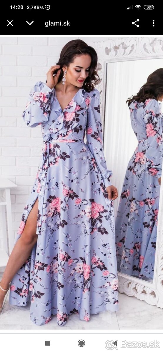 Predám tieto spoločenské šaty, dlhé šaty, šaty vhodné na spoločenskú udalosť, slávnostné šaty na svadbu. Raz použité, nové stáli 100€.Univerzálna veľkosť, zavinovacie elegantné šaty.