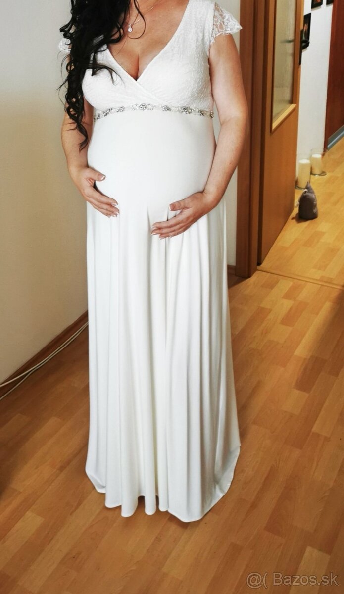 Predám tehotenské svadobné šaty Tiffany rose. Veľkosť 42-44. Šaty kupované ako nové iba raz oblečené na cca 2h. Vydávala som sa v 7 mesiaci tehotenstva. Príjemný materiál. Šaty kupované v salóne
