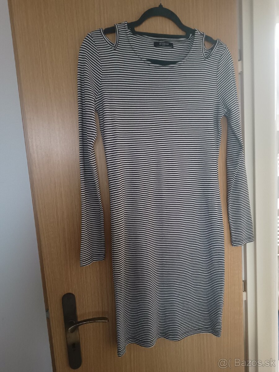Dámske šaty Reserved,veľkosť L,vodorovné čiernobiele pásiky,nové,nenosené.Výborný materiál viskóza+ elastan.Šaty sú mäkké,pružné,lahké na nosenie.Dľžka 92cm