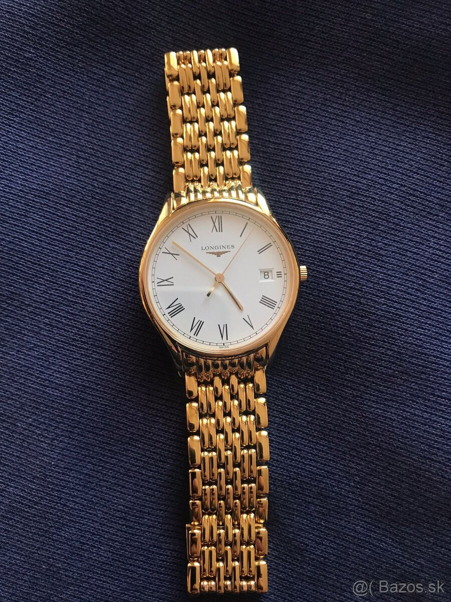 mám na predaj tieto krásne zlaté pánske hodinky Longines, konkrétne Longines Lyre L4.759.2, vo veľmi zachovalom stave. Pasovať budú aj na dámsku ruku, nakoľko naramok je upravený na tenšie zápästie a rozmerovo taktiež tak pôsobia. Článok je samozrejme súcasťou (viď foto). Predávam čisto hodinky, bez krabice. Ide však o originál, žiadny falzifikát. Hodinky sú elegantné, ideálne do obleku, k športovému saku, či k civilnému formálnemu oblečeniu. Veľmi dobre sedia na ruke a pekne kopírujú zápästie nakoľko majú chytro umiestnený náramok. Jemné vlásočnice sa nachádzajú na viečku puzdra. Zafírové sklo, ako puzdro hodiniek a kovový náramok sú bez škrabancov, vlásočníc. Na hodinkách bola menená batéria v certifikovanom hodinárstve v Bratislave – Dom Hodín.