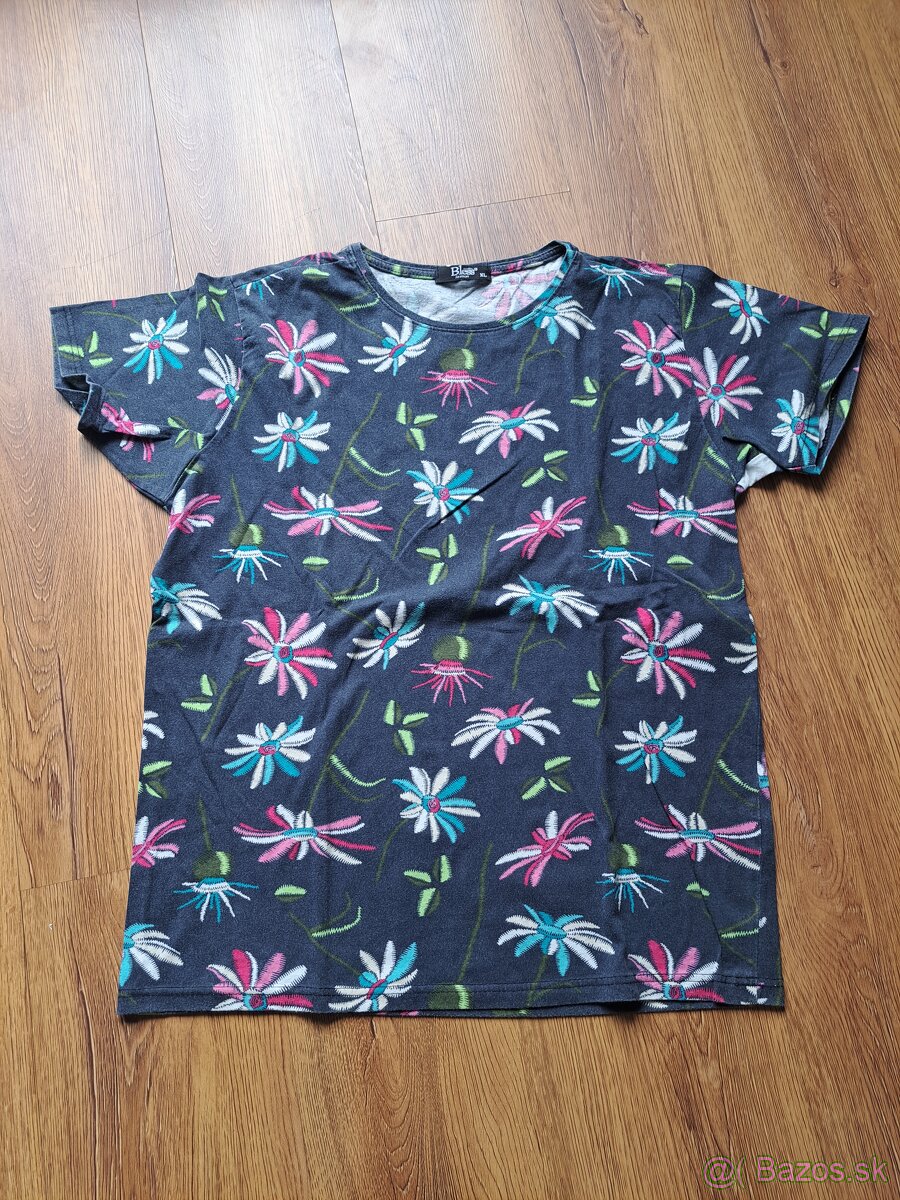 Pár krát oblečené, s potlačou s krátkym rukávom, veľkosť XL, dĺžka 68cm,šírka 54cm