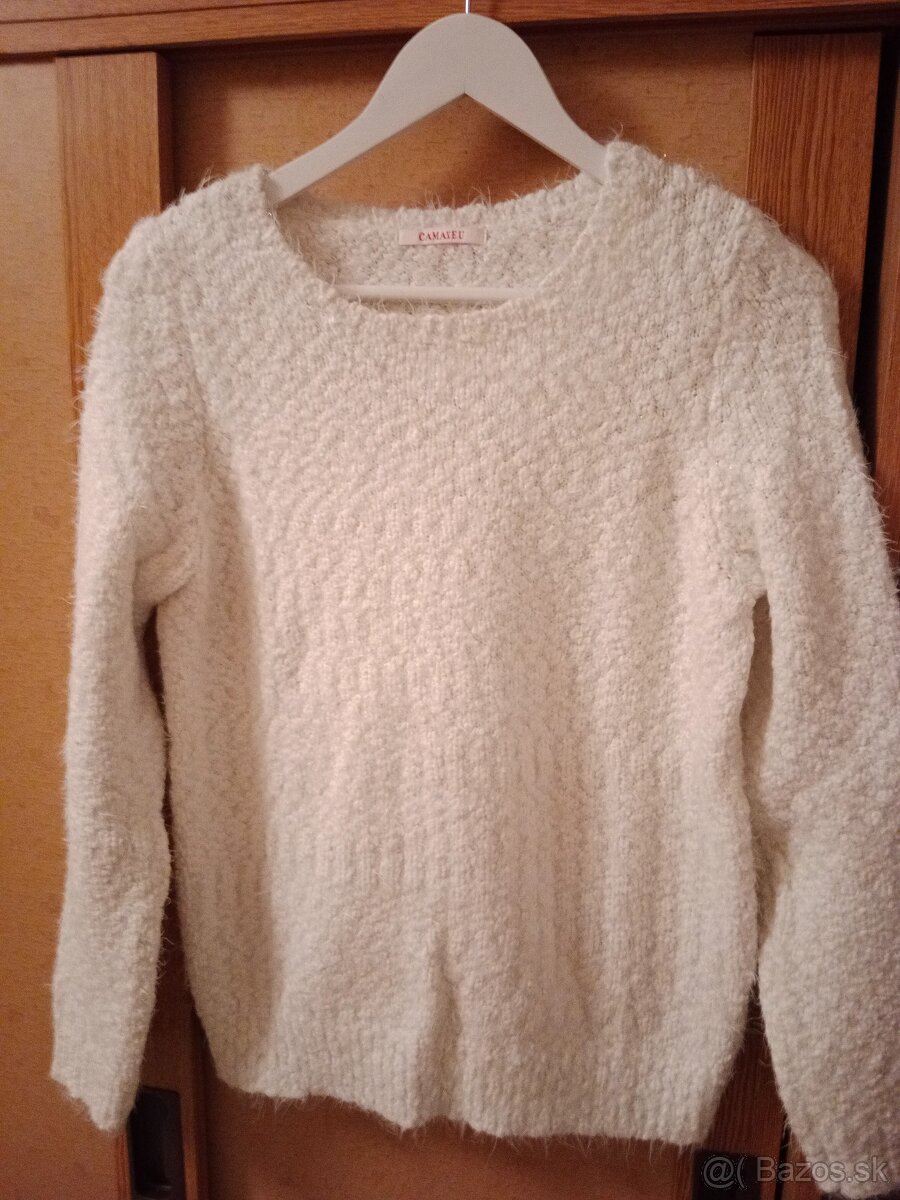 Predám veľmi pekný, málo nosený pulóver bielej farby, veľkosť M, zn. Camaieu.