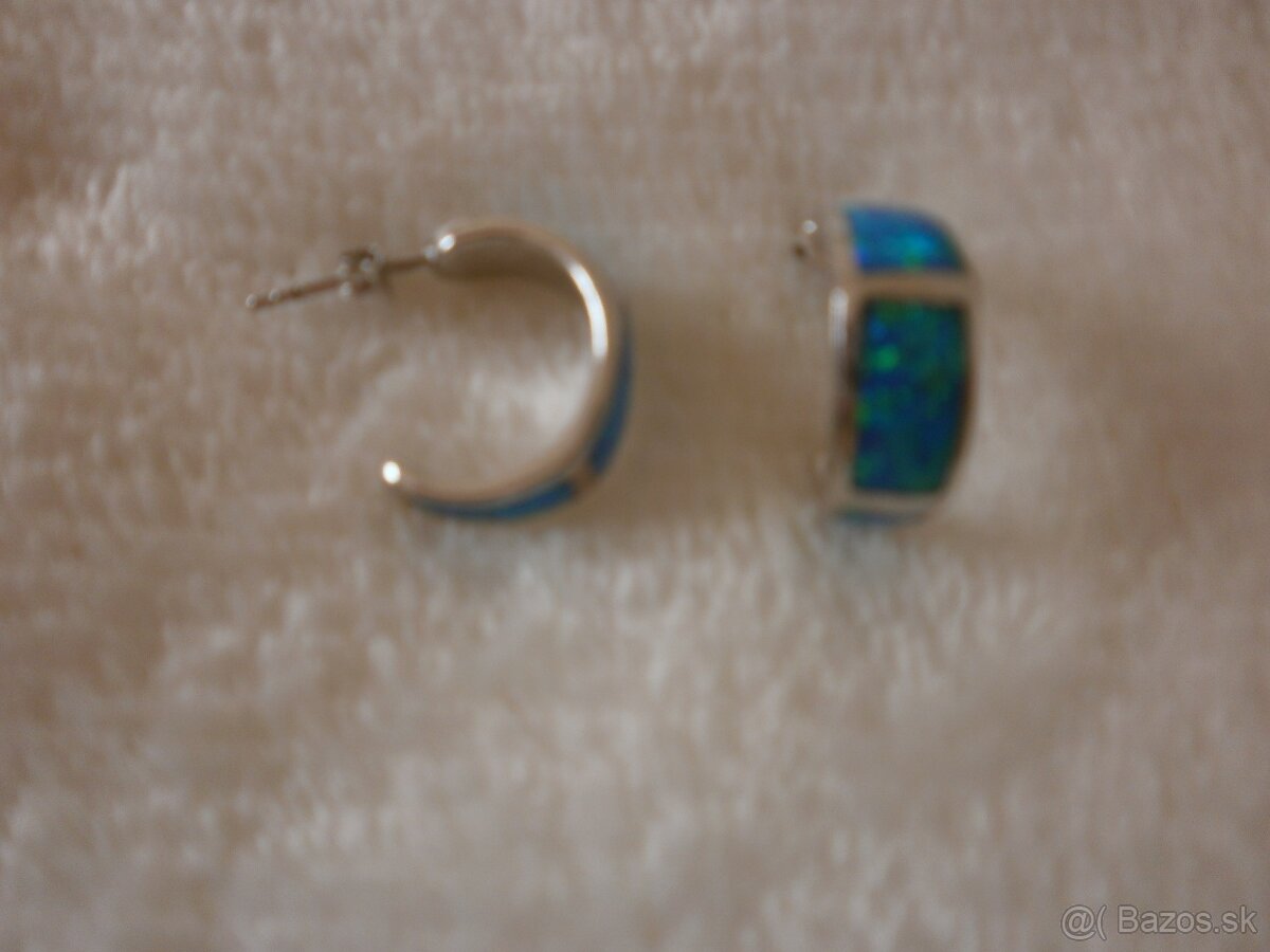 Predám opuncované strieborné náušnice s opálom - /polodrahokam/, výška 1,2cm.