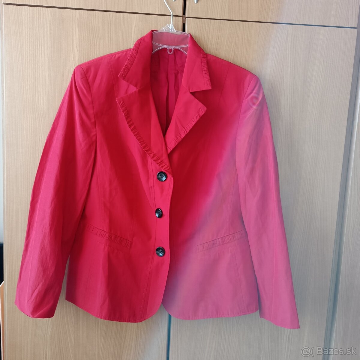 Predám červený kostým Gerry Weber č. 46, nenosený za 12€, biely kabátik vo veľmi dobrom stave č. 44/46 za 9€, nové nohavicové šaty, č. 44/46 za 9€.