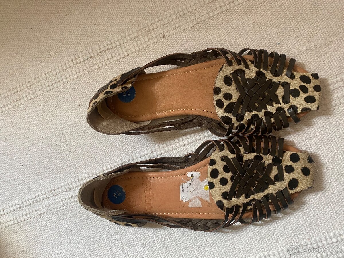 Nadherne kozene sandalky v style huaracho kupene pre malu slecnu ktorej nozka bola ale vacsia takze predavam. Cislo je 3 a pol.