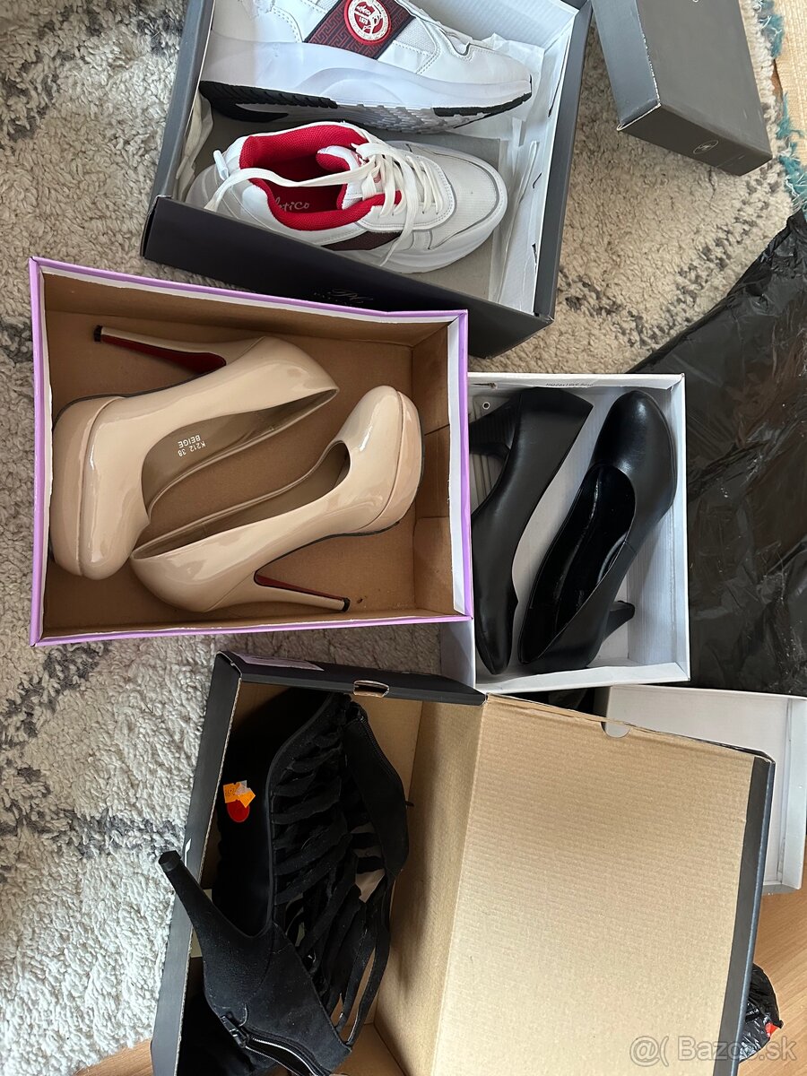 Predám 4 druhy tenisiek buď zvlašť 10€ biele ostatné po 5€ / spolu 25€.