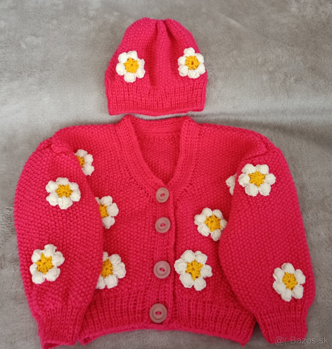 Krásny dievčenský štrikovaný svetrík( dĺžka 31cm,šírka 31 CM)s čiapkou, značka - Dora.
