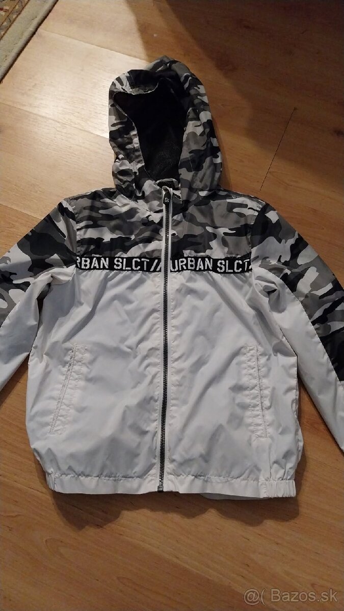 Štýlová chlapčenská prechodná bunda veľkosť S - [27.2. 2026]Štýlová chlapčenská prechodná bunda veľkosť S, kapucňa sa môže odopinať. Cena 10 eur