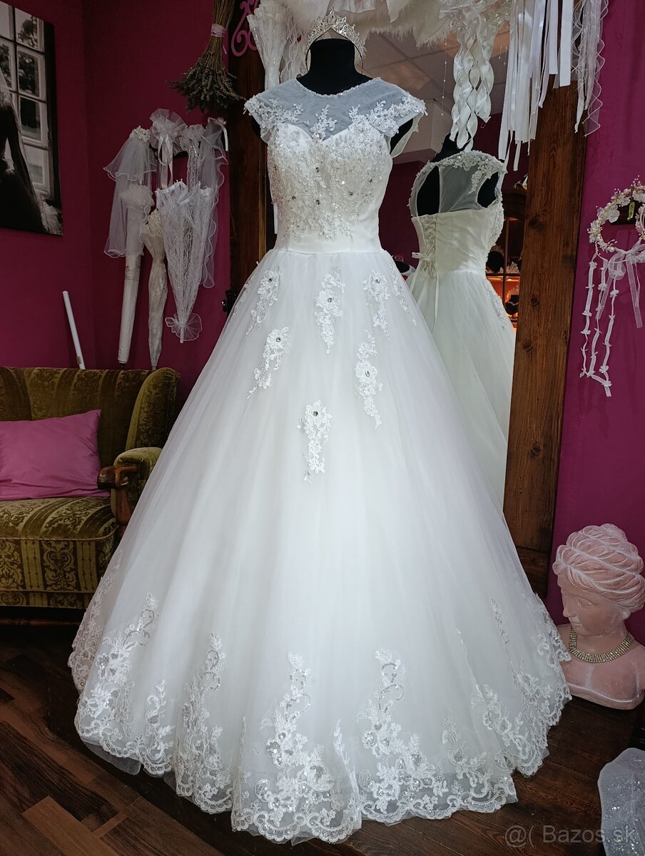 Krásne svadobné elegantné šaty, vzadu viazanie. Farba Ivory