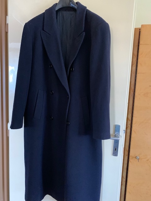 Zachovaly cierny vlneny pansky kabat, velkost 54.