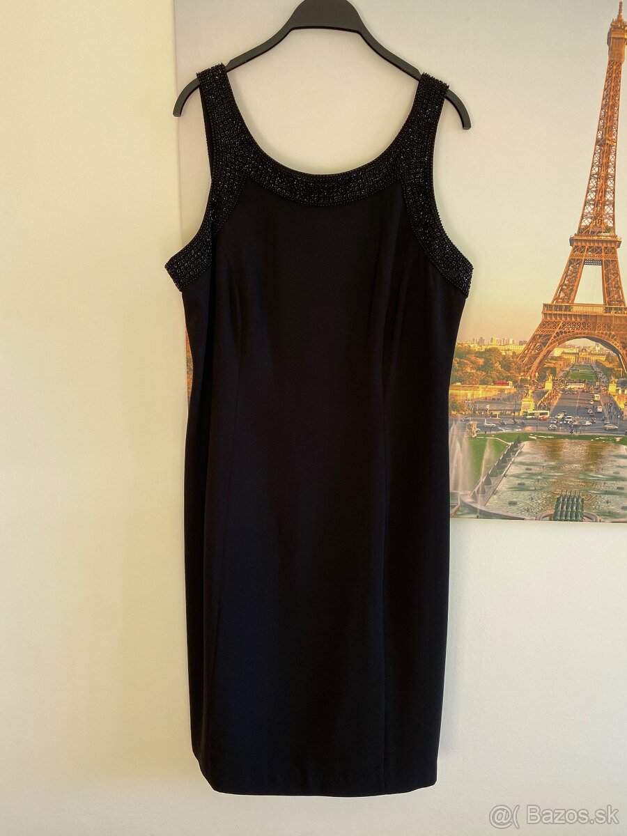 Predám krásne čierne šaty talianskej značky MARIPOSA, ktoré sú aj podšité, zapínanie na zadný zips. Šaty majú výstrih a ramienka zdobené drobnými čiernymi korálkami, rovný strih a pekne sedia na postave, kvalitný, nekrčivý materiál. Veľkosť 42, rozmery: dĺžka šiat 105 cm, hrudník 50x2 cm, najširšia čast 59x2 cm. Pôvodná cena bola 120 EUR. BA alebo poštou+poštovné.