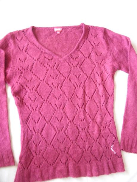 krásny pulóver, žiadne žmolky, miery: pod pazuchami 53x2, pás 49x2, boky 57x2, dĺžka 73, rukáv 70cm, prispôsobí sa, farba na foto je skreslená, skutočná farba je tehlová (terakota), poštovné podľa sl. pošty