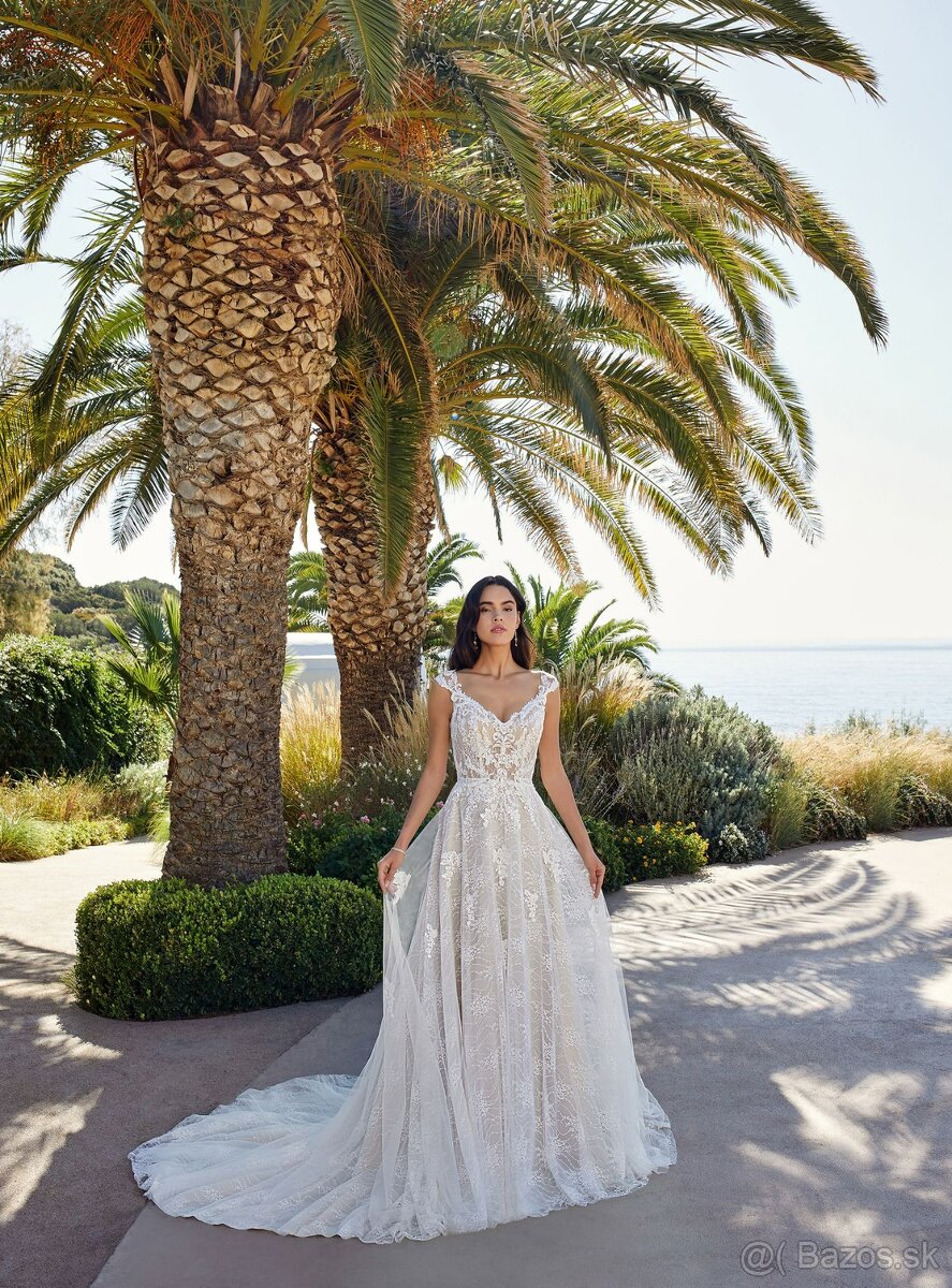 Ponúkam na predaj krajkové svadobné šaty, sú ľahučké, biele, veľkosť 44/46, značka Cosmobella