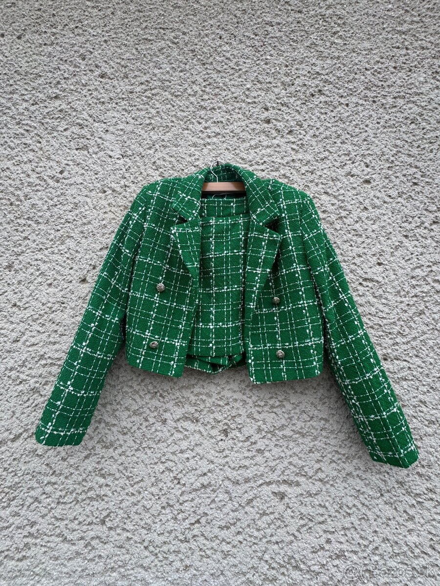 • Štýlový zelený kostýmový set v štruktúrovanom materiáli. Ideálny na svadbu ako hosť, oslavy alebo spoločenské udalosti, aj na bežné nosenie. Raz oblečené.