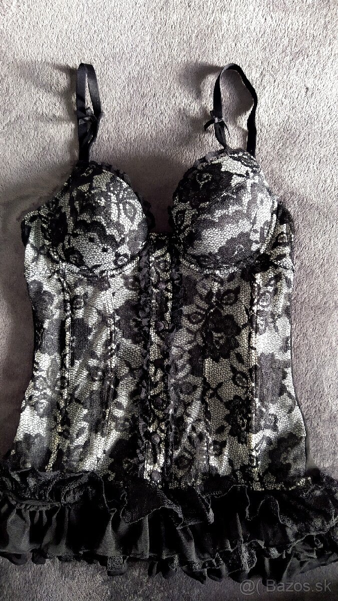 Nočná košeľa, čipkovaná, veľkosť xs (možno sadne aj na menšie s nakoľko je elastická). Značka La Senza. Obvod si viete vzadu nastavovať podľa potreby. Nenosím ju tak posúvam za novú cenu + poštovné prevodom alebo osobne v Ba. Pôvodne stála okolo 45 eur.