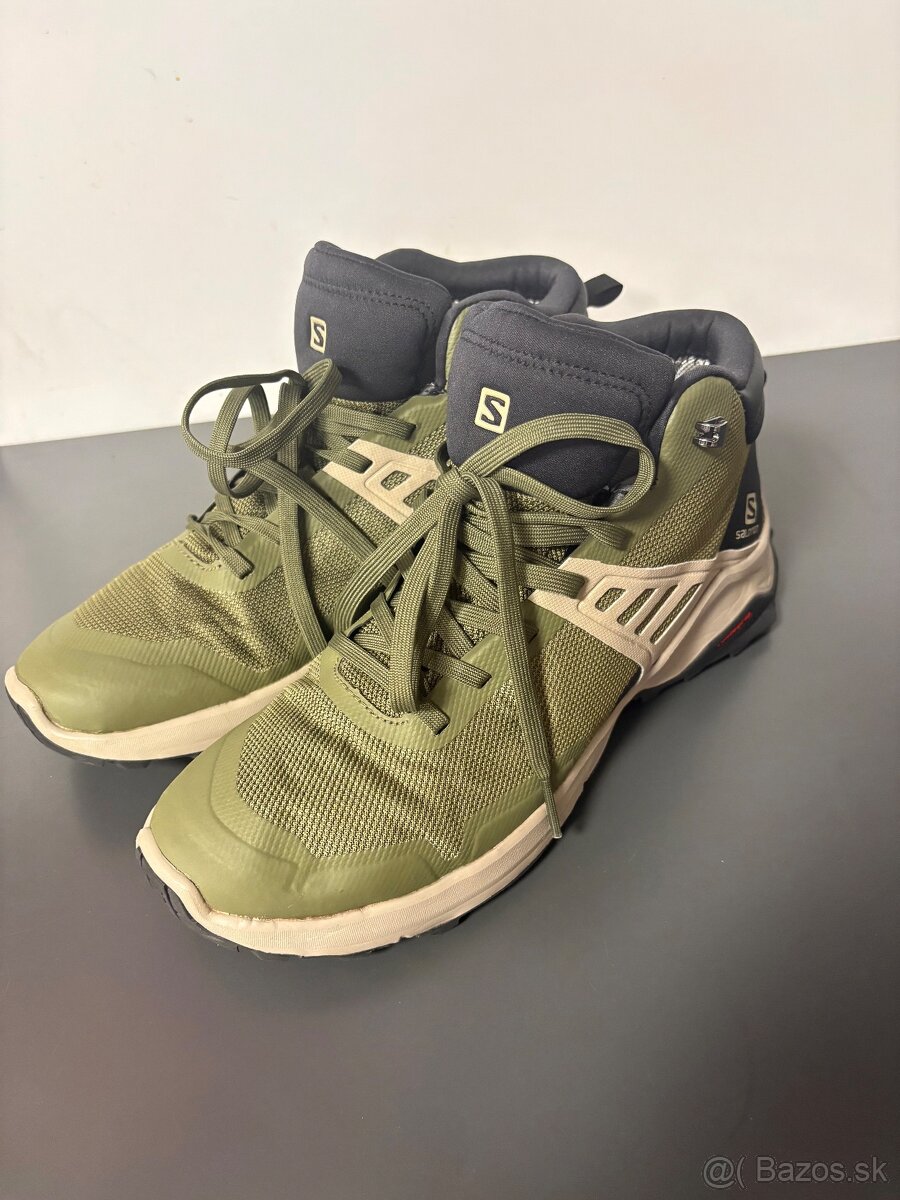 obuv Salomon X Raise Mid GTX. Tento model je navrhnutý s dôrazom na stabilitu, pohodlie a ochranu počas turistiky.