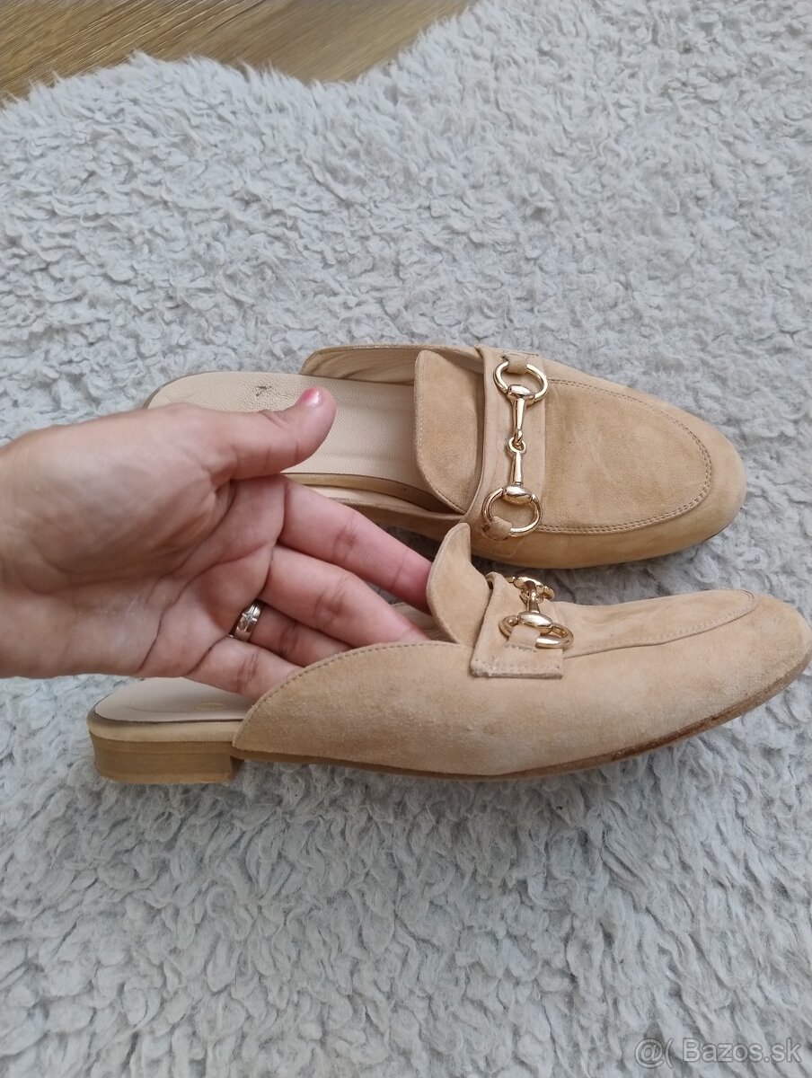 Predám šľapky Ovye Camel farby nosené na striedačku s inými..nosenie vidno len na podrážke,už ich nenosím prešla som na vyššie platformy... pôvodná cena vysoká...sú kožené..