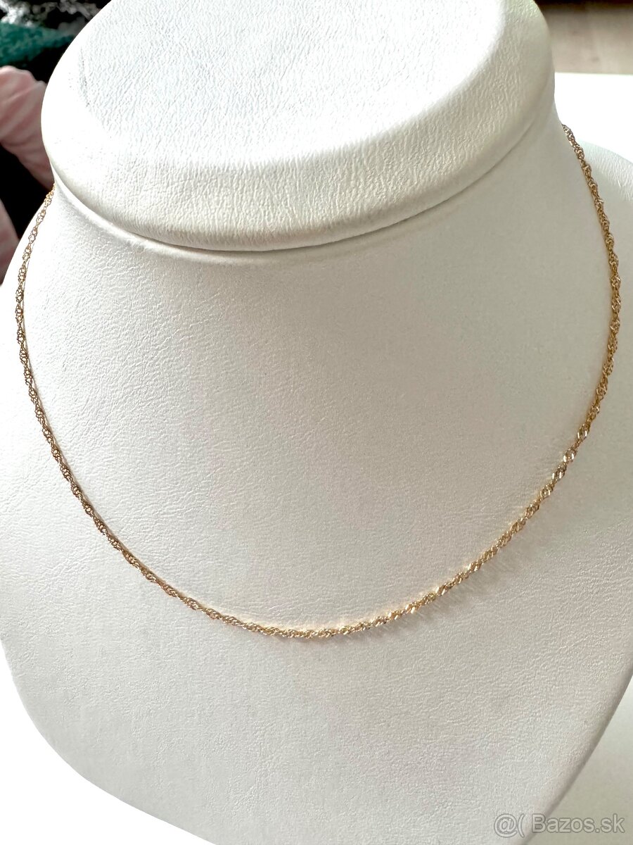 Zlatá retiazka Singapur 585 - [13.2. 2026]Predám retiazku vyrobenú zo 14. Karatového zlata. Dĺžka retiazky je 42cm, váha 1.35g