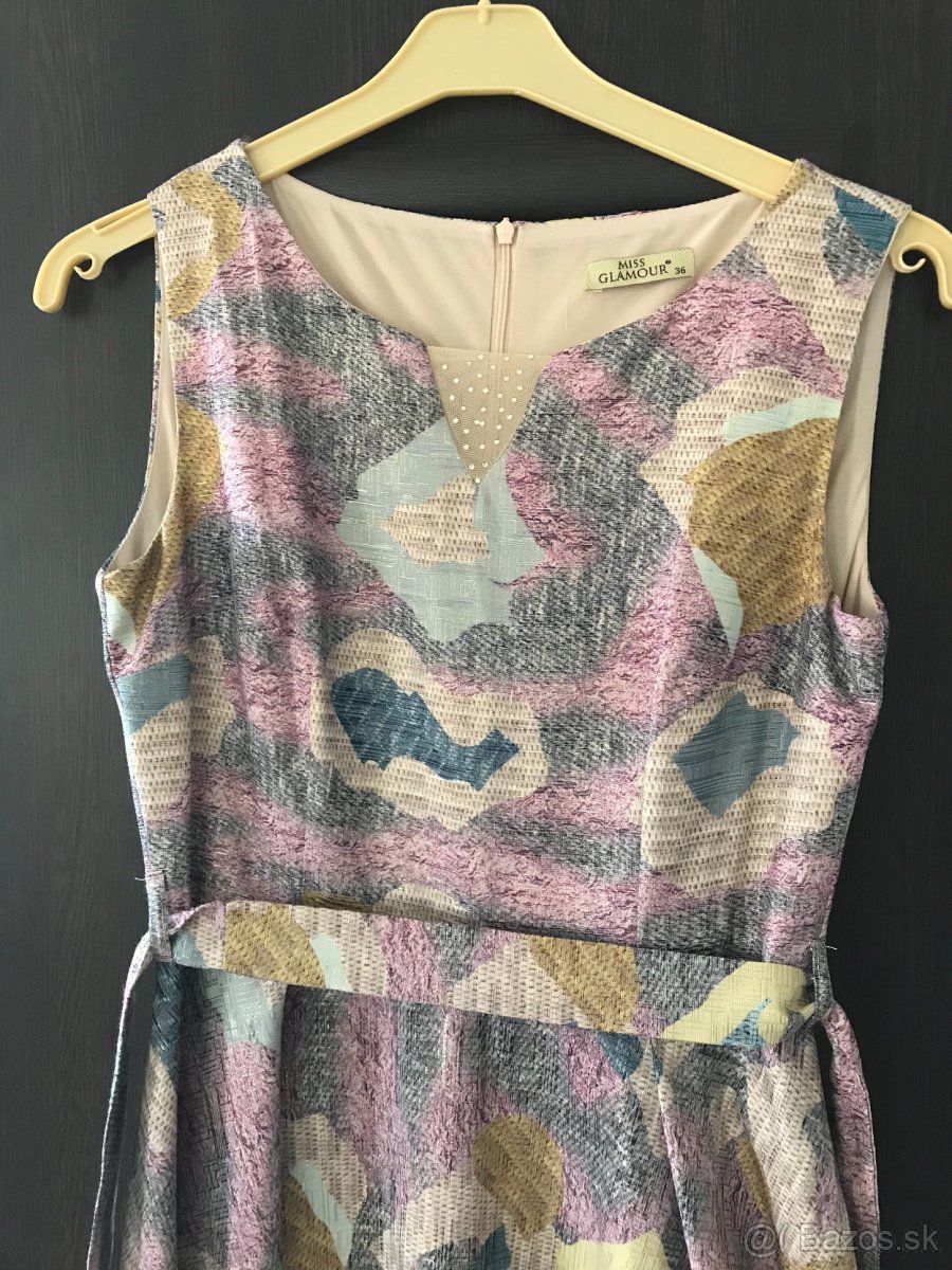 predam tieto spolocenske saty, raz oblecene na svadbe, s krasnym 3D motivom, na foto to nie je vidno, ale lesknu sa do zlata, velkost 36, su velmi lahucke, velmi dobre som sa v nich citila, PC bola 150e, teraz 90, alebo dohoda