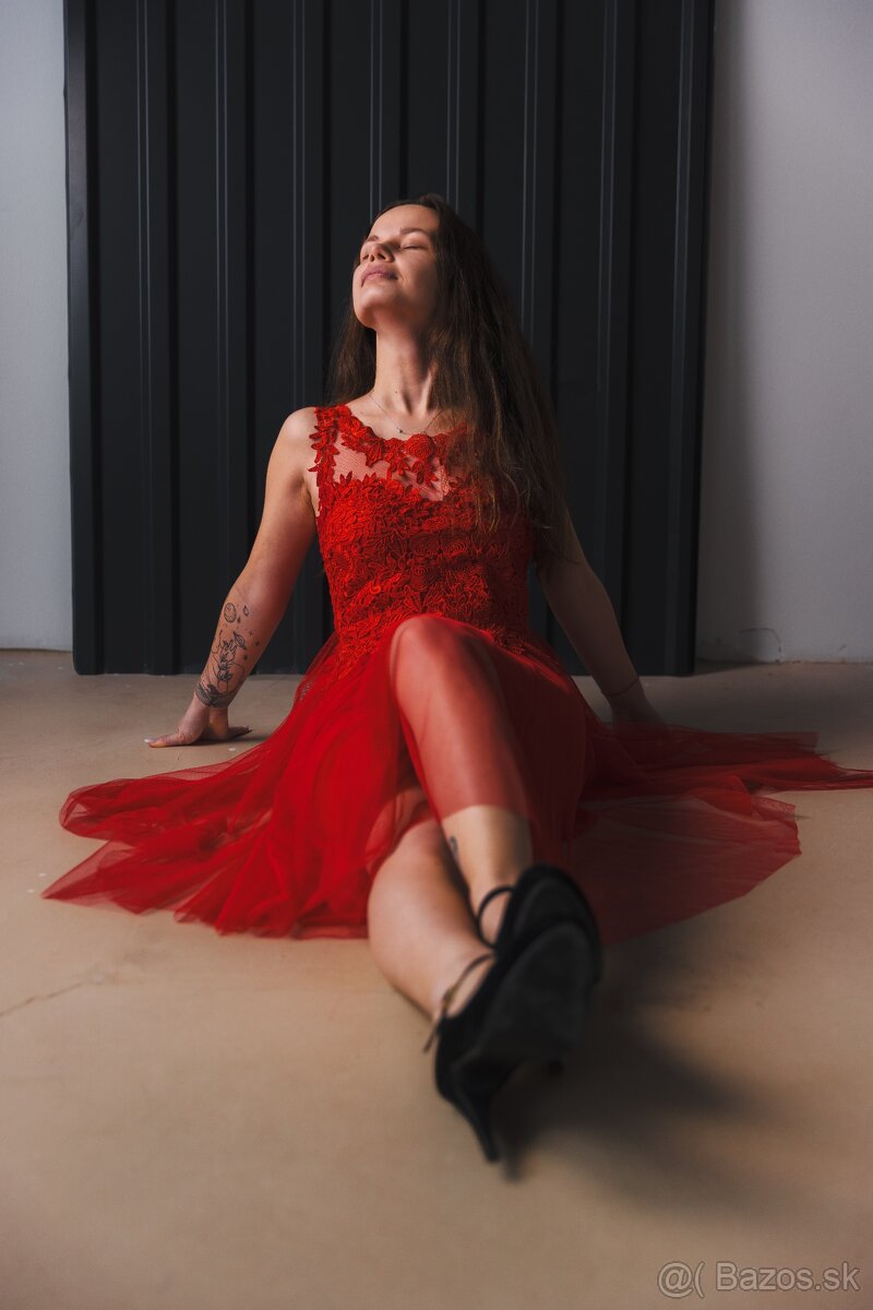 Krásne, červené šaty, boli použité iba raz na fotenie, vhodné na viac príležitostí