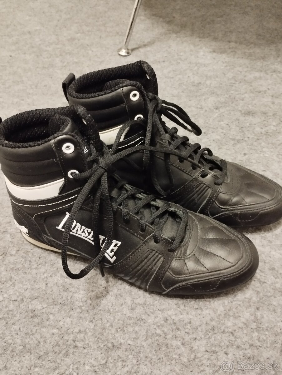 Predám veľmi zachovalé box boty Lonsdale, čierne, použité len 3krát, veľkost 39,5.